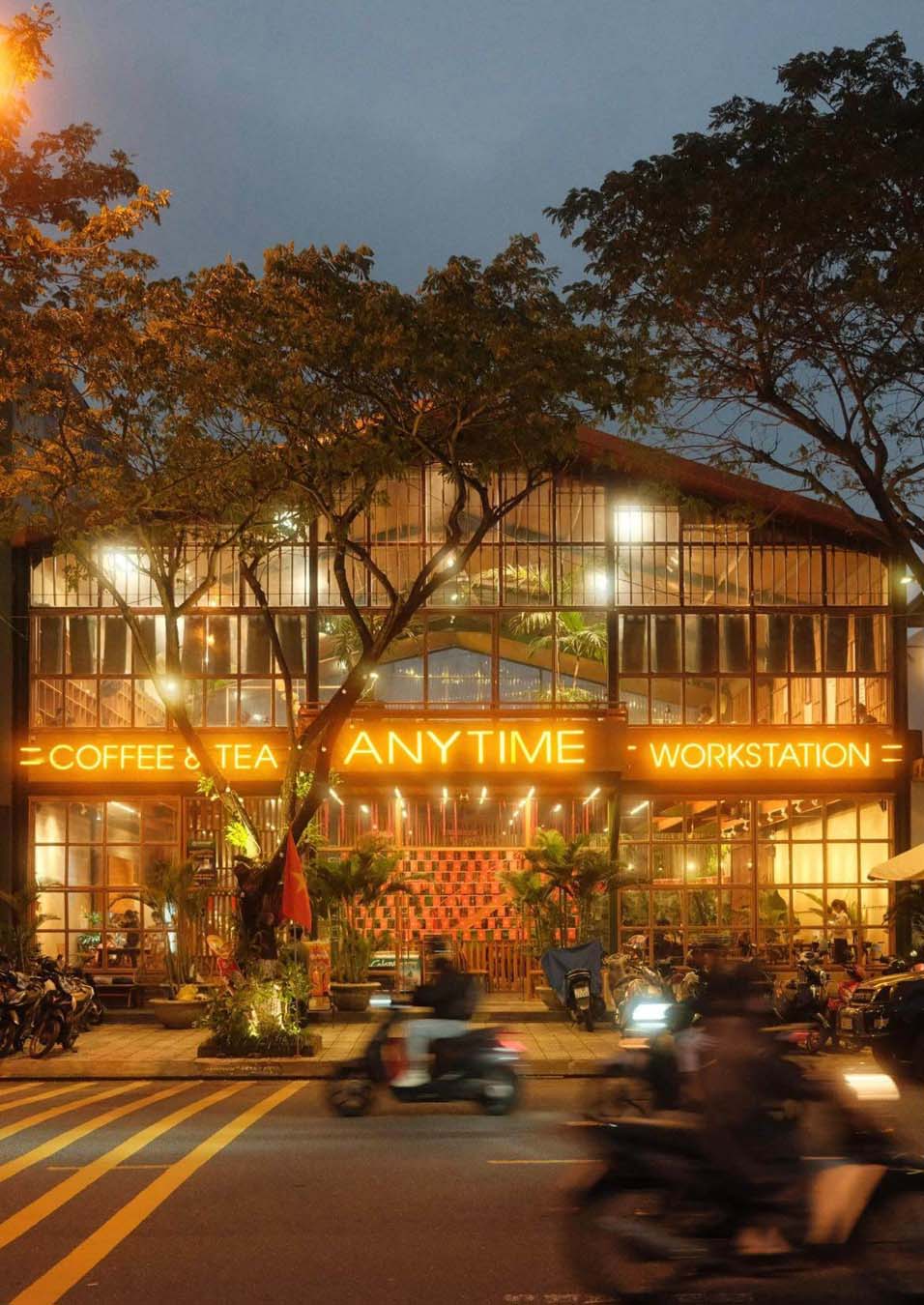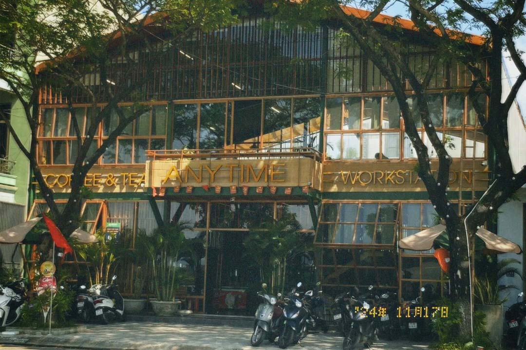 Nằm ngay bên bờ sông Hàn, Anytime Coffee được biết đến như một trong những quán cà phê Đà Nẵng hiếm hoi mở cửa 24/7. Không gian rộng rãi với thiết kế rustic, mộc mạc, đan xen cây xanh mọc tự nhiên tạo nên cảm giác gần gũi và thoáng đãng. Bãi gửi xe rộng, thuận tiện cho cả xe máy và ô tô, giúp việc ghé quán vào bất cứ thời điểm nào trong ngày đều dễ dàng.