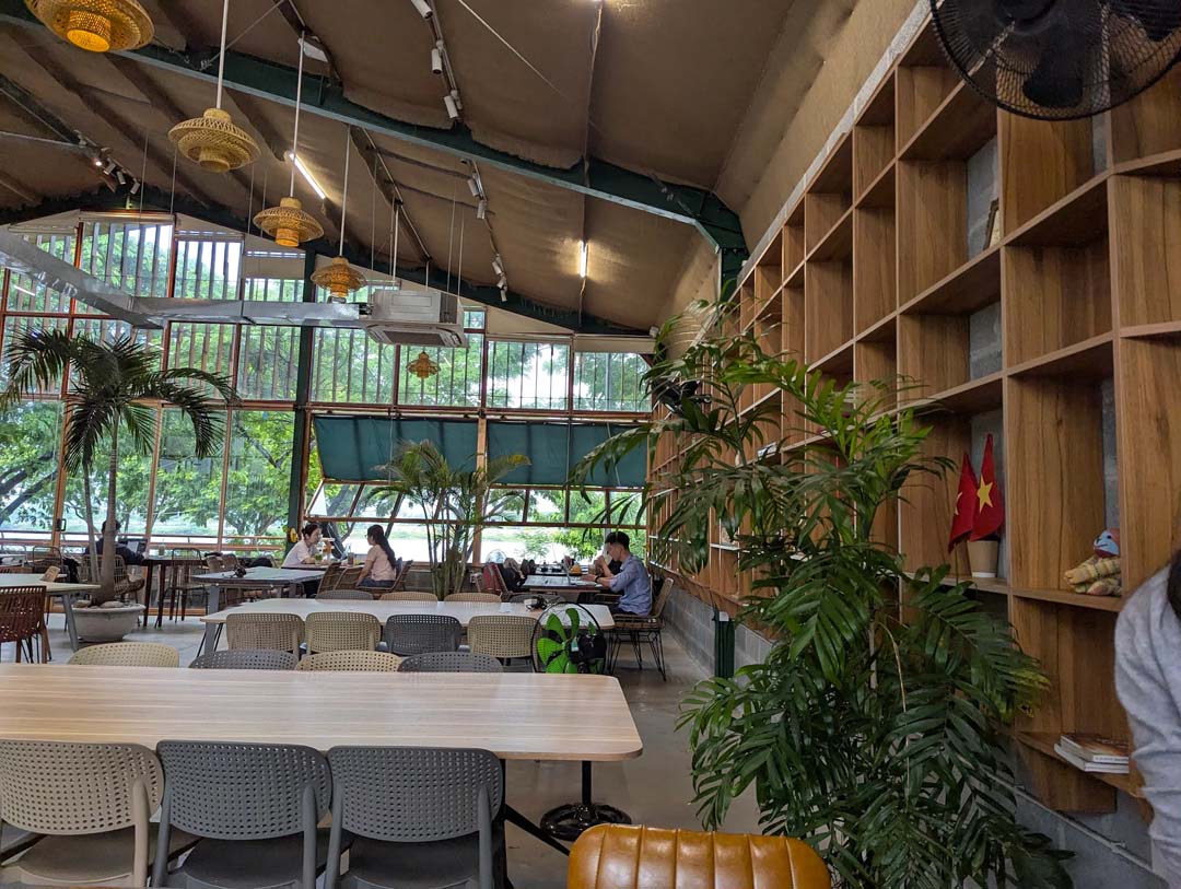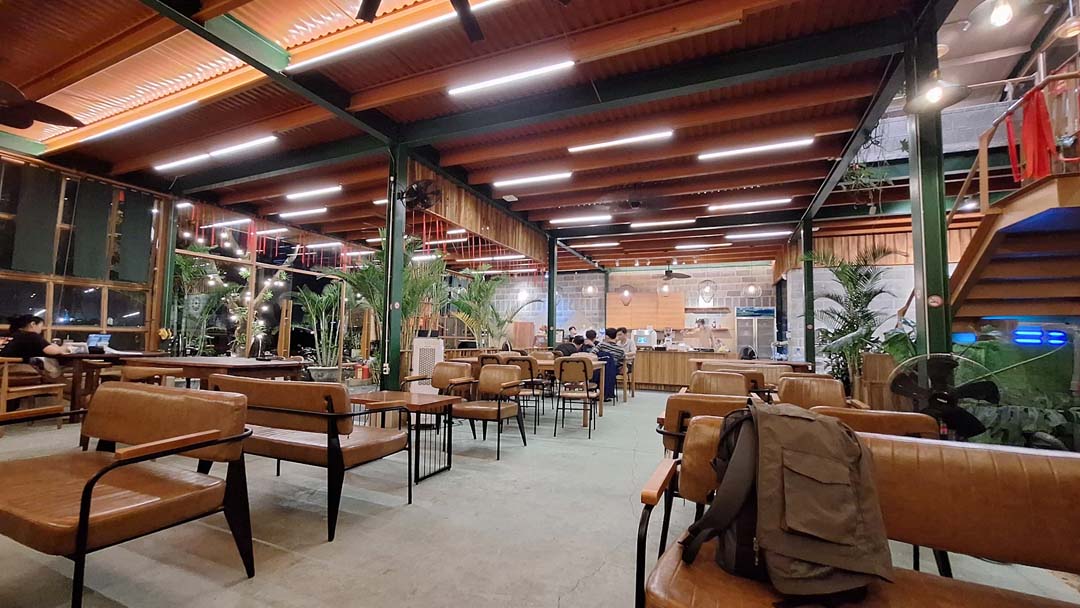 Quán có hai tầng với phong cách tách biệt rõ ràng. Tầng 1 mang không khí nhẹ nhàng, thích hợp để nhâm nhi cà phê và ngắm phố hay trò chuyện cùng bạn bè. Trong khi đó, tầng 2 lại được thiết kế như một không gian làm việc và học tập, có điều hòa mát lạnh, bàn ghế thoải mái cùng ổ điện đầy đủ. Đây là lựa chọn được nhiều dân văn phòng, sinh viên và cả khách nước ngoài ưa chuộng.