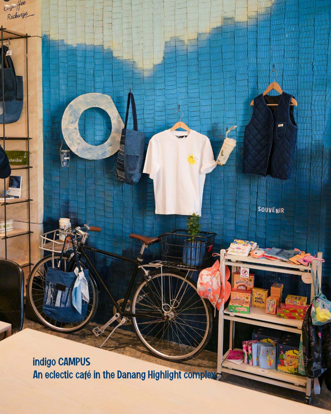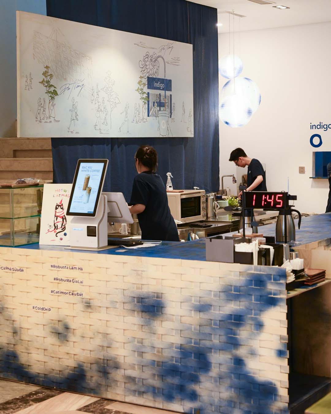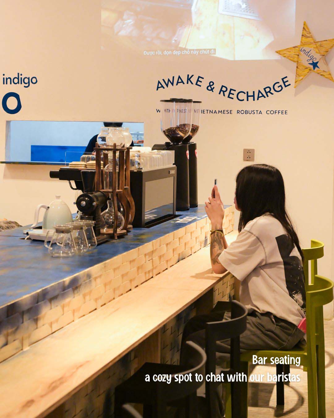 Cửa hàng được thiết kế theo phong cách campus với nhiều khu vực bàn ghế linh hoạt, kết hợp khu trưng bày merchandise và sản phẩm từ các local brand. Lần đầu tiên, indigo giới thiệu quầy bar mở – nơi bạn có thể trò chuyện trực tiếp cùng đội ngũ đứng sau mỗi ly cafe Đà Nẵng, cùng một khoảng giếng trời xanh mát mang lại cảm giác yên tĩnh, dễ chịu giữa lòng thành phố. Trong thời gian tới, quầy trà đặc sản & matcha, khu tổ hợp mua sắm cùng nhiều thương hiệu quen thuộc cũng sẽ dần được hoàn thiện.