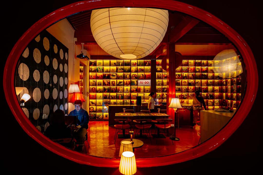 Không gian Jam Space gây ấn tượng với tone màu cam – đỏ chủ đạo, thiết kế mang nhiều cá tính và ánh sáng được bố trí hợp lý. Quán có bán đĩa than, hệ thống âm thanh được đầu tư chỉnh chu, nhạc có thể order theo mood, thể hiện rõ gu thẩm mỹ của chủ quán. Đây không chỉ là một quán cafe Đà Nẵng đơn thuần, mà còn là nơi để cảm nhận âm nhạc và không gian theo cách chậm rãi, có chiều sâu.