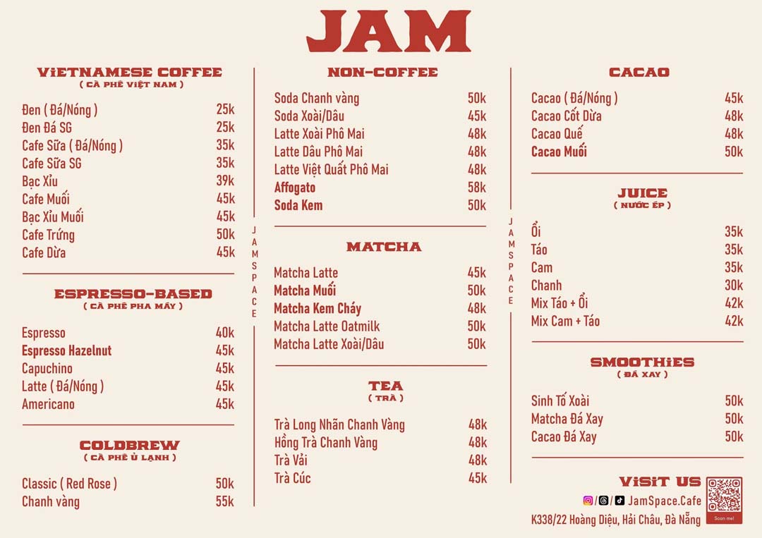 Lần đầu ghé Jam Space, nhiều người dễ có cảm giác đây là một không gian khá lạ và rất “mood”. Khi cần yên tĩnh để ngồi một mình nghe nhạc thì có, còn khi muốn nhâm nhi đồ uống nhẹ và trò chuyện cùng bạn bè hay người yêu cũng rất phù hợp. Sự linh hoạt này khiến Jam Space trở thành điểm đến lý tưởng cho những ai yêu cà phê, âm nhạc và những khoảng lặng riêng giữa nhịp sống Đà Nẵng.