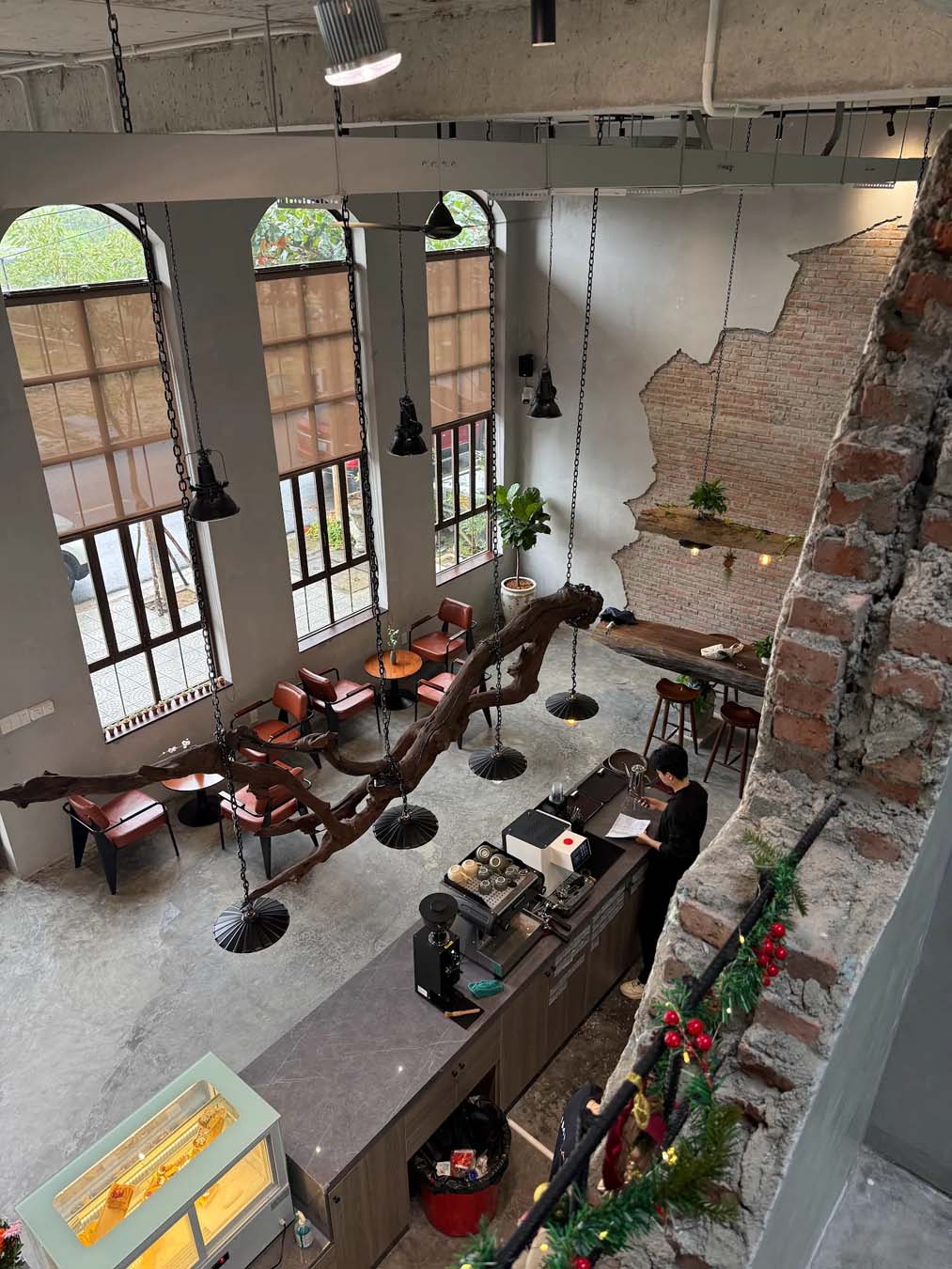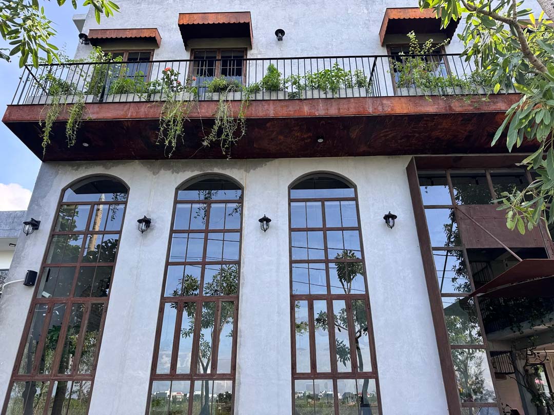 Lumi Lab là một điểm dừng chân mới mẻ dành cho những ai đang tìm kiếm một không gian cafe Đà Nẵng yên tĩnh, rộng rãi và có chiều sâu trong thiết kế. Quán gây ấn tượng ngay từ bên ngoài với phong cách Industrial cá tính, khối kiến trúc đơn giản kết hợp các ô kính lớn và vật liệu thô mộc. Bước vào bên trong, cảm giác đầu tiên là sự thoáng đãng và dễ chịu, khi bàn ghế được bố trí giãn cách vừa đủ để giữ sự riêng tư, phù hợp cho trò chuyện nhẹ nhàng hay tập trung làm việc.
