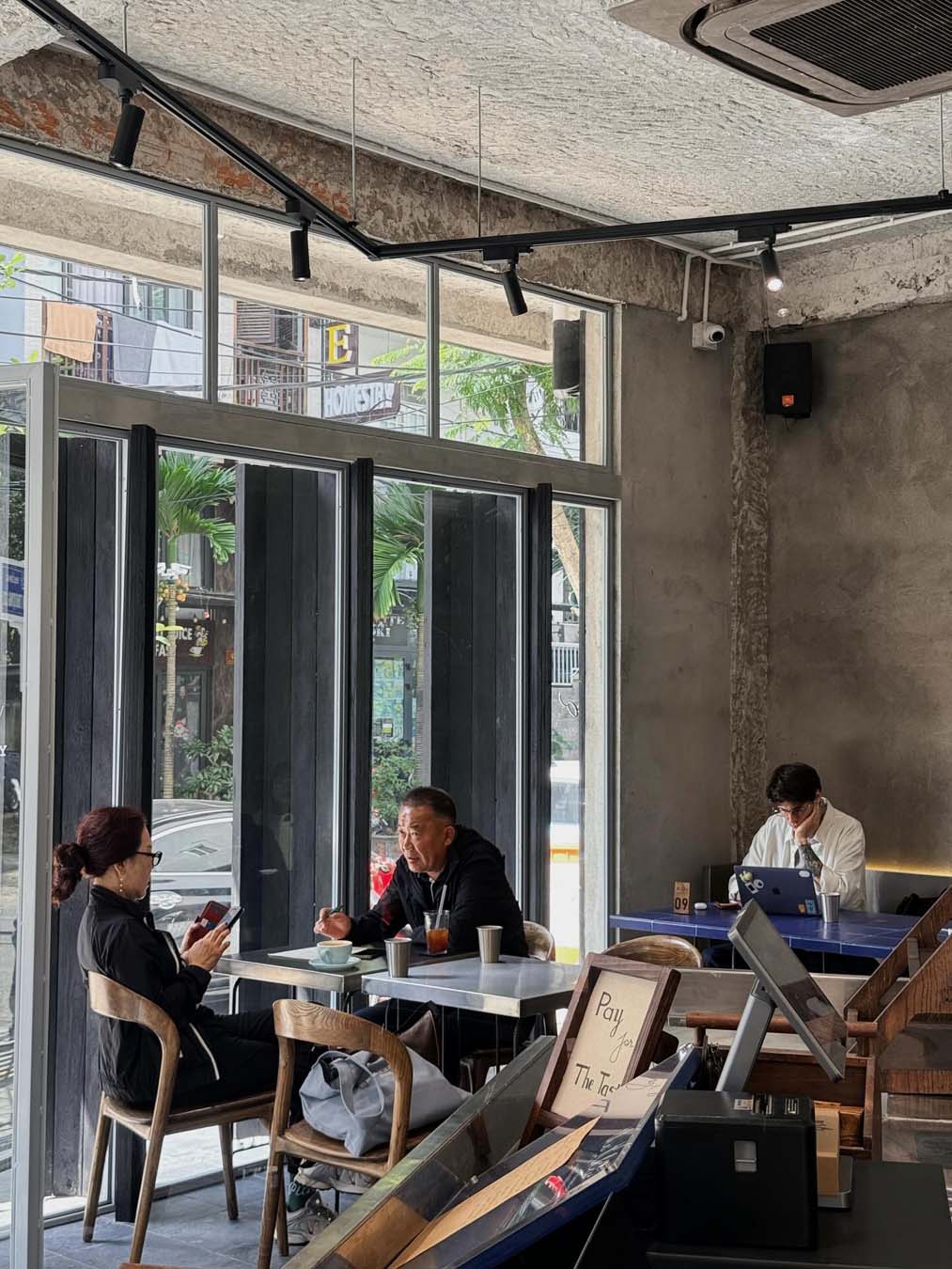 Không gian của quán gây thiện cảm ngay từ ánh nhìn đầu tiên với bảng màu tối giản trắng – xám, xanh chàm và nâu gỗ. Ánh nắng tự nhiên kết hợp cùng chất liệu gần gũi như đất, cát, gỗ tạo nên cảm giác ấm áp, tinh tế. Quầy bar lớn đặt ở trung tâm cùng cách bố trí bàn ghế gọn gàng khiến The Khéo trở thành nơi lý tưởng để làm việc, đọc sách hay đơn giản là ngồi lại thật lâu giữa nhịp sống cafe Đà Nẵng đang ngày càng sôi động.