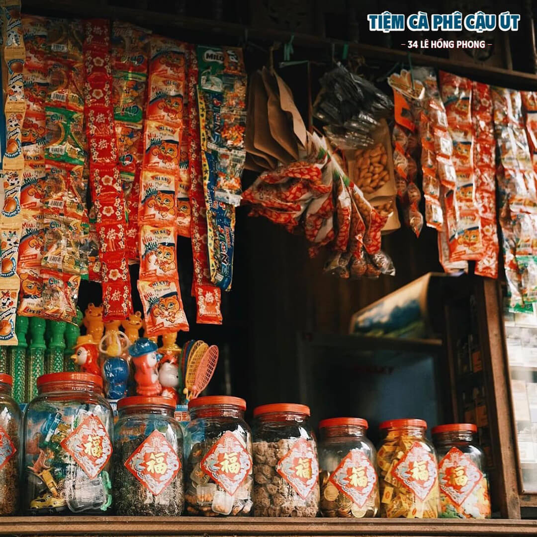 Điểm nhấn đặc biệt của Cậu Út chính là góc “tạp hóa tuổi thơ” với đủ món quà vặt gắn liền ký ức: mì tôm, ô mai, xí muội, bim bim… Những chi tiết nhỏ này không chỉ khiến thế hệ 8x, 9x bồi hồi mà còn mang đến cho các bạn trẻ cảm giác thích thú, vừa lạ lẫm vừa gần gũi. Không ít bạn đã chọn nơi đây làm background để lưu lại những bức hình sống ảo đậm chất retro.