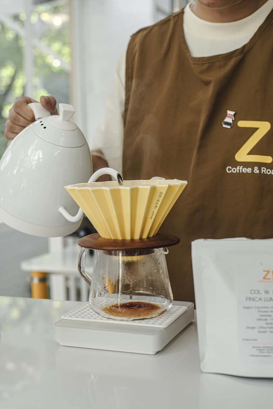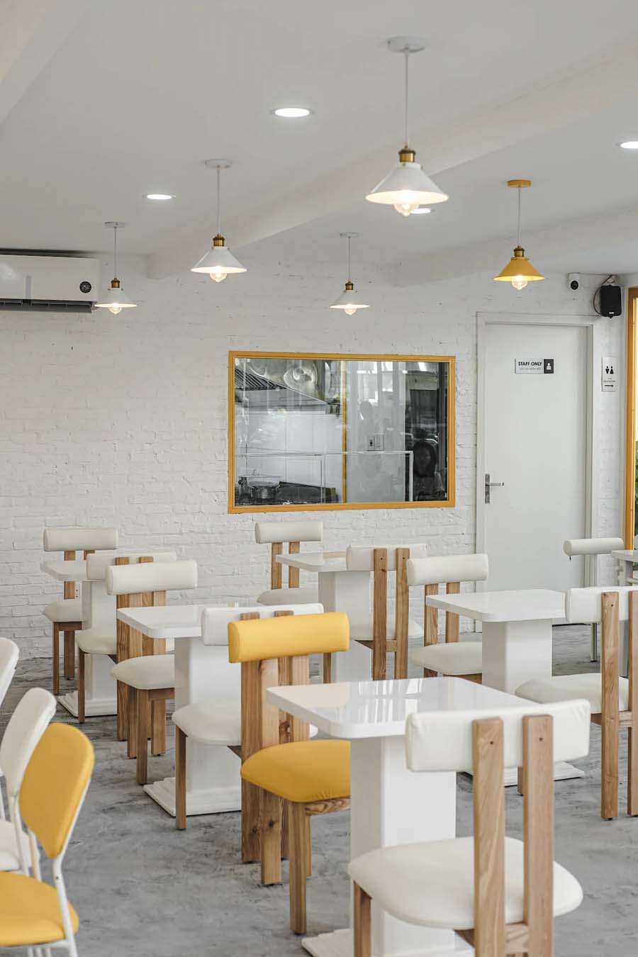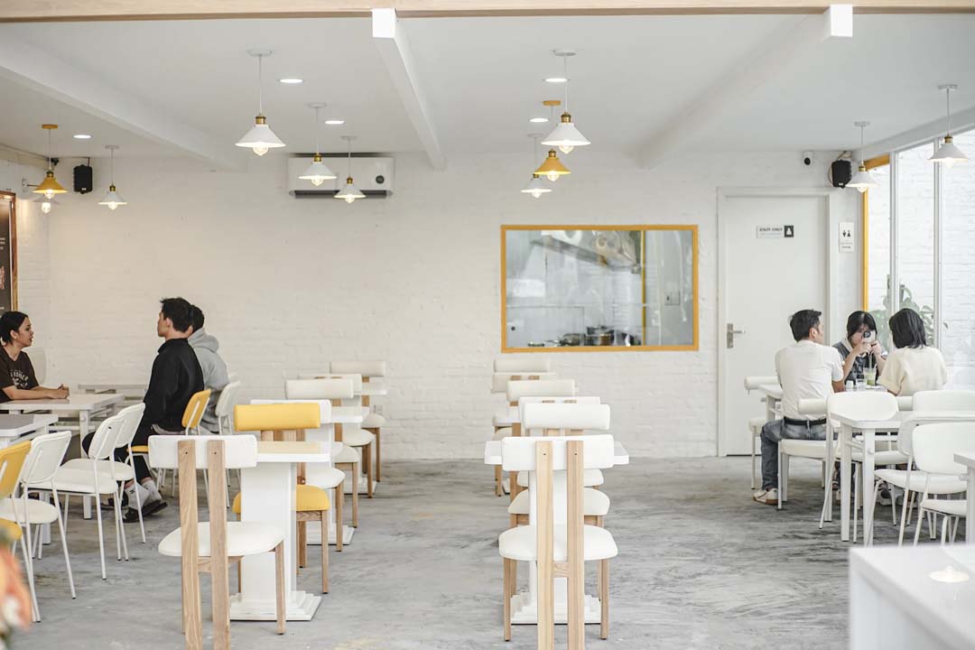 Không gian tại Zi mang tinh thần work easy chill freely, phù hợp cho cả những lúc cần tập trung làm việc lẫn khi muốn trò chuyện thư giãn. Cơ sở mới là cơ sở 2 của quán, bên cạnh cơ sở 1 tại 109 Hoàng Kế Viêm, vẫn giữ phong cách thiết kế quen thuộc với tông trắng chủ đạo, điểm xuyết các chi tiết vàng chanh và nội thất vàng ấm. Không gian được mở rộng hơn với trần cao, có tầng lửng và khu vực ngoài trời thoáng đãng, mang lại cảm giác thoải mái ngay khi bước vào.